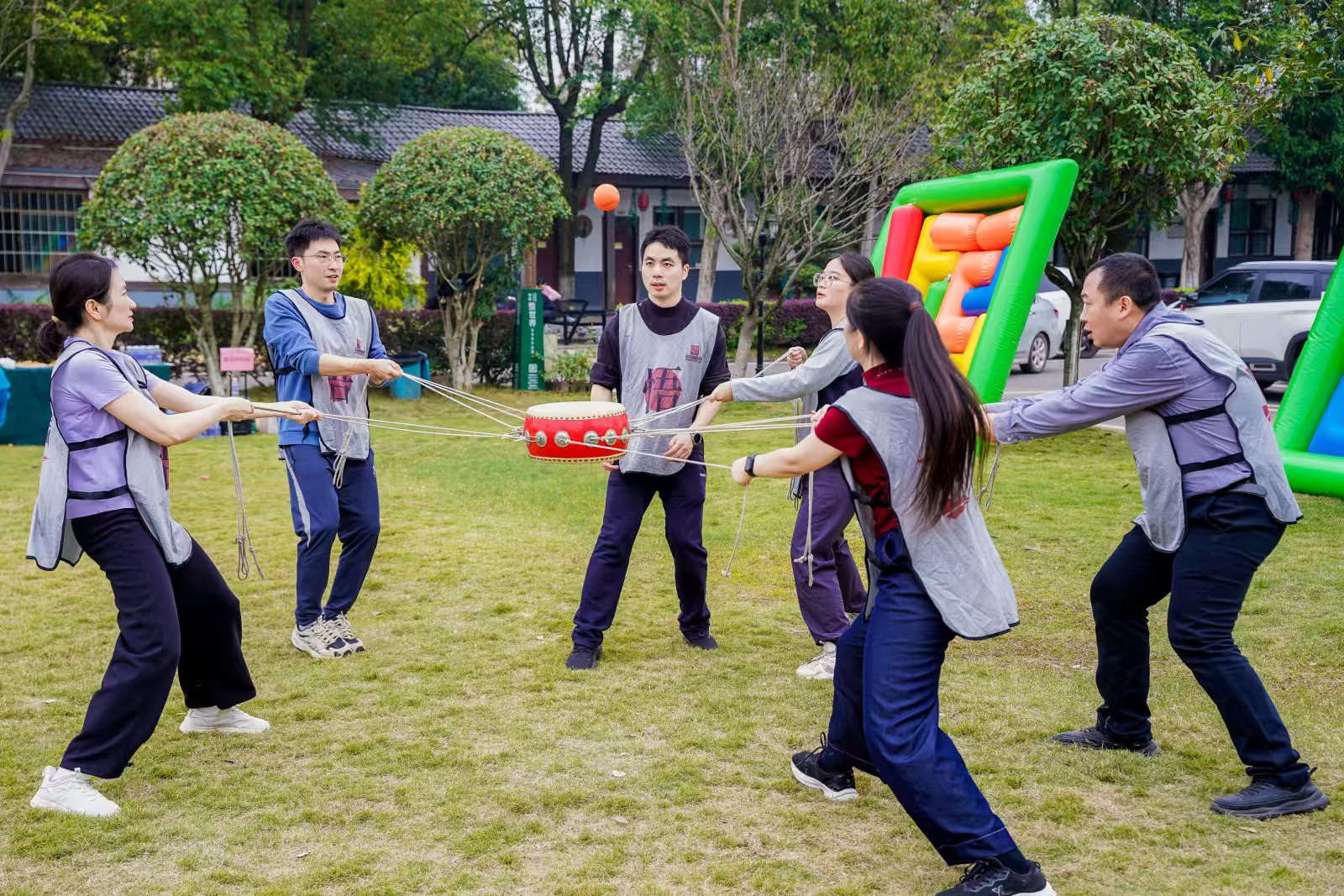 本次活动以“趣享运动 聚力同行”为主题,设置“奋笔疾书”“同心击鼓”“凝心聚力”等多项趣味运动项目,既考验智慧与体能,更锤炼协作与默契。赛场上,队员们全情投入、配合密切,为共同目标奋勇争先,现场加油声、欢呼声、笑语声此起彼伏,充分展现了机关事务干部职工昂扬向上、团结奋进的精神风貌。
