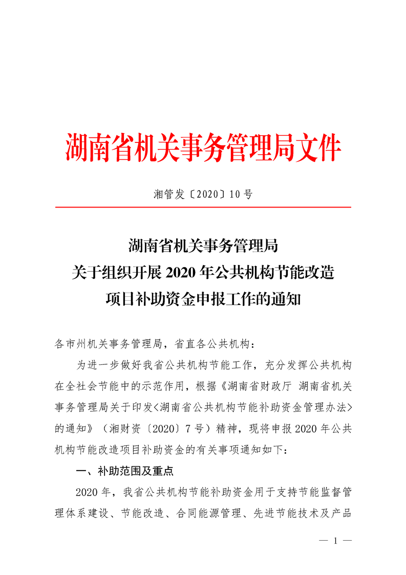 关于组织开展2020年公共机构节能改造项目补助资金申报工作的通知
