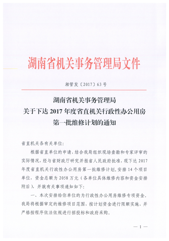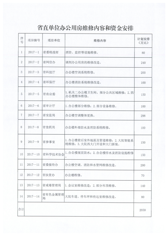 禁漫天堂 关于下达2017年度省直机关行政性办公用房第一批维修计划的通知