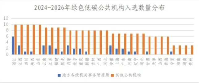 图1:2024—2026年绿色低碳公共机构入选数量分布图