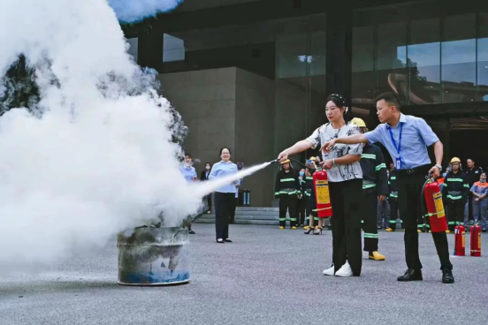 培训中,讲师围绕隐患排查、疏散逃生、消防器材使用等方面,通过一个个现实生活中真实发生的火灾案例,进行了全面系统、深入细致、生动直观地讲解。在消防逃生演练现场模拟办公区域突发火灾,工作人员压低身体,贴近墙壁,有序引导人员疏散逃生。同时,讲师示范了干粉灭火器材的使用方法,并辅导大家现场操作。