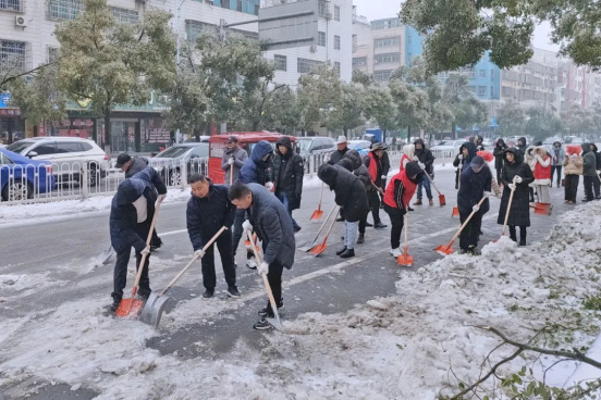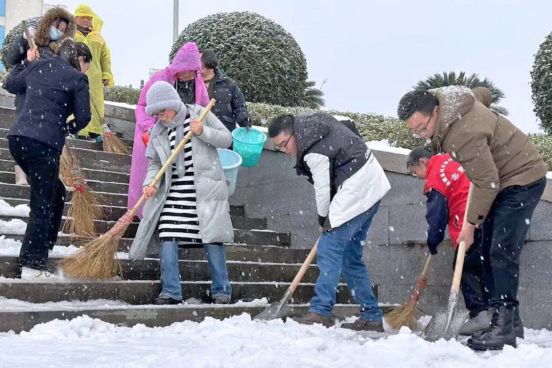 岳阳市局组织40多名党员干部和志愿者,组建3个党员志愿服务突击队,分别由局领导带队,深入办公院落、城区主街道,迎着风雪、冒着严寒,清理路面冰雪和树枝,先后清理办公院落积雪1000多平方米,在城区主干道青年东路破冰2公里,全力保障干部群众的出行安全。